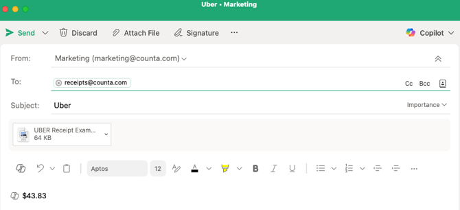 The system will use the amount to match receipts and automatically populate the description of the expense line with the email subject.