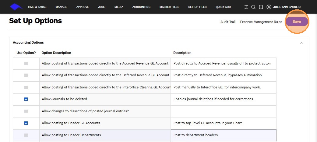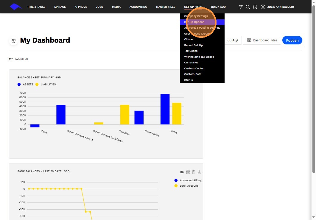 1. Navigate to Set Up Files > Set Up Options