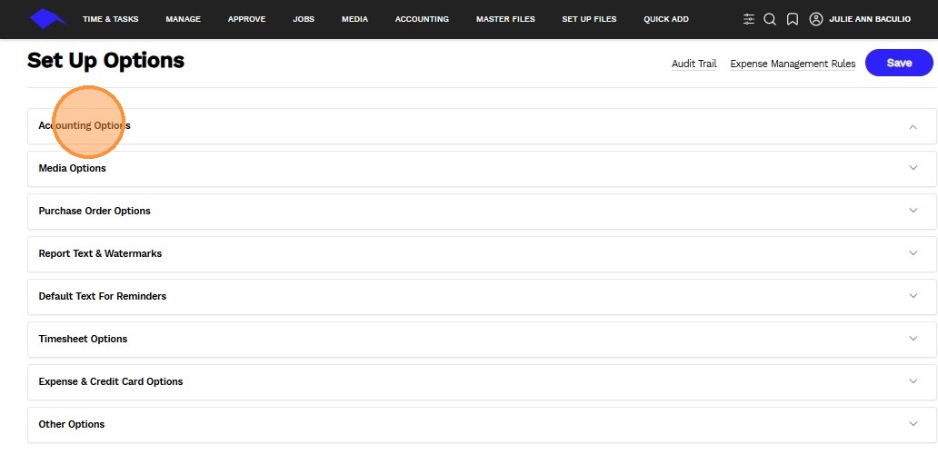 2. Click on Accounting Options
