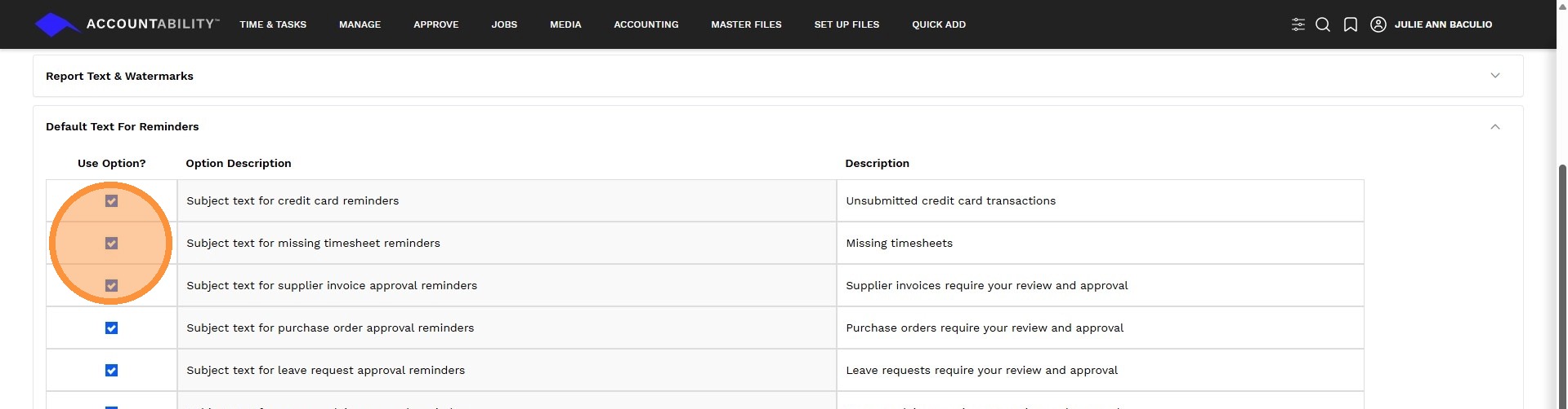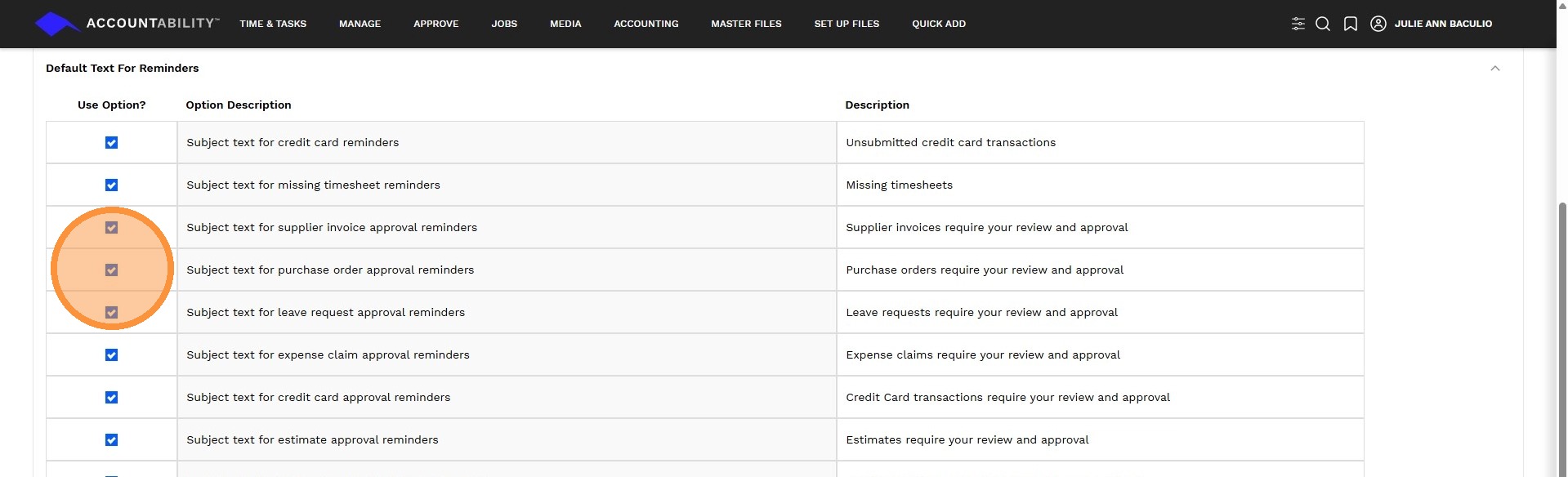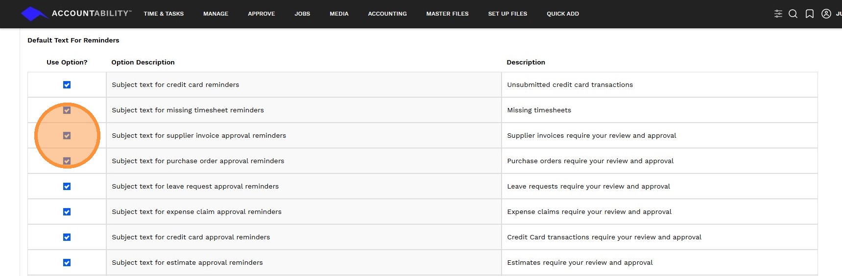 Accountability provides the option to configure system generated reminders to match the organizations workflow.