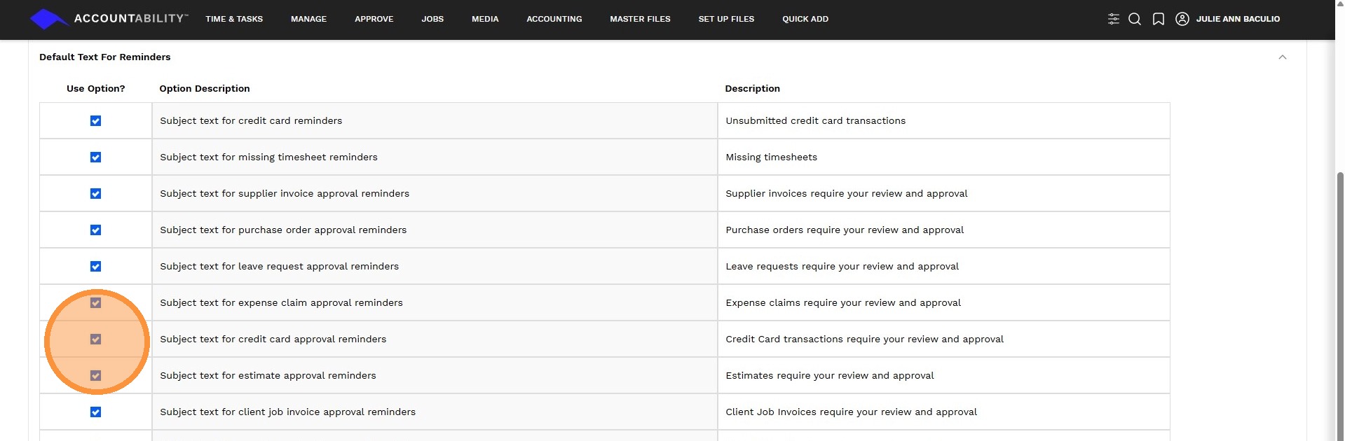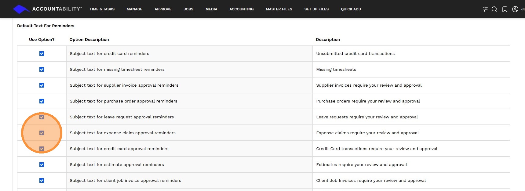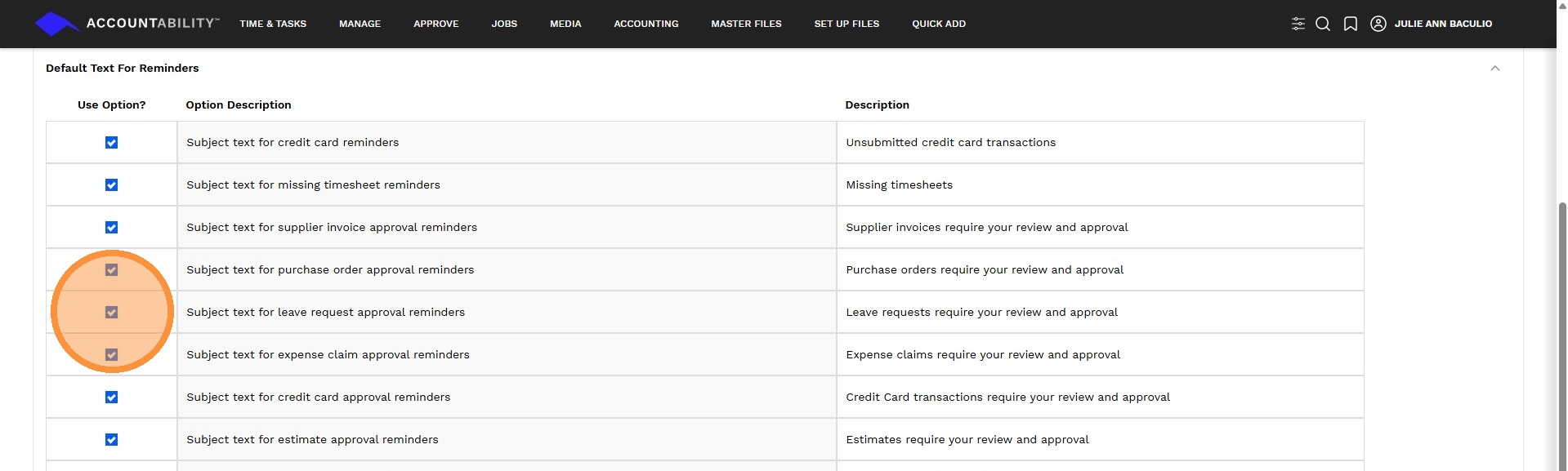Accountability provides the option to configure system generated reminders to match the organizations workflow.