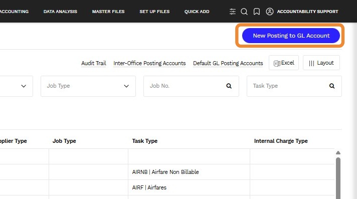 3. Click the New Posting to GL Account.