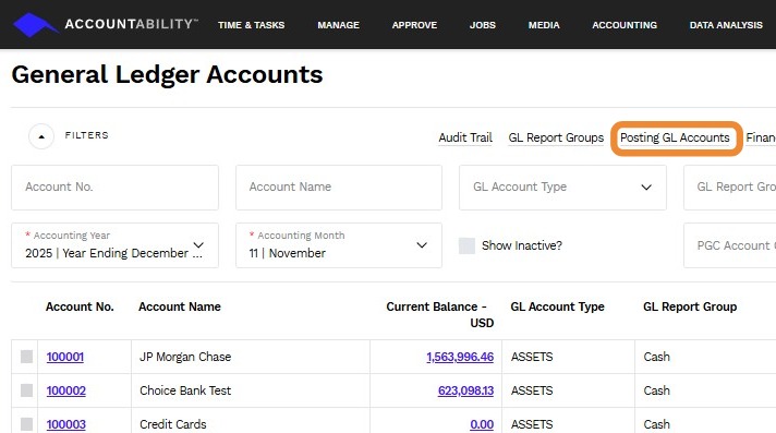1. Navigate to ACCOUNTING > General Ledger > General Ledger Accounts.
