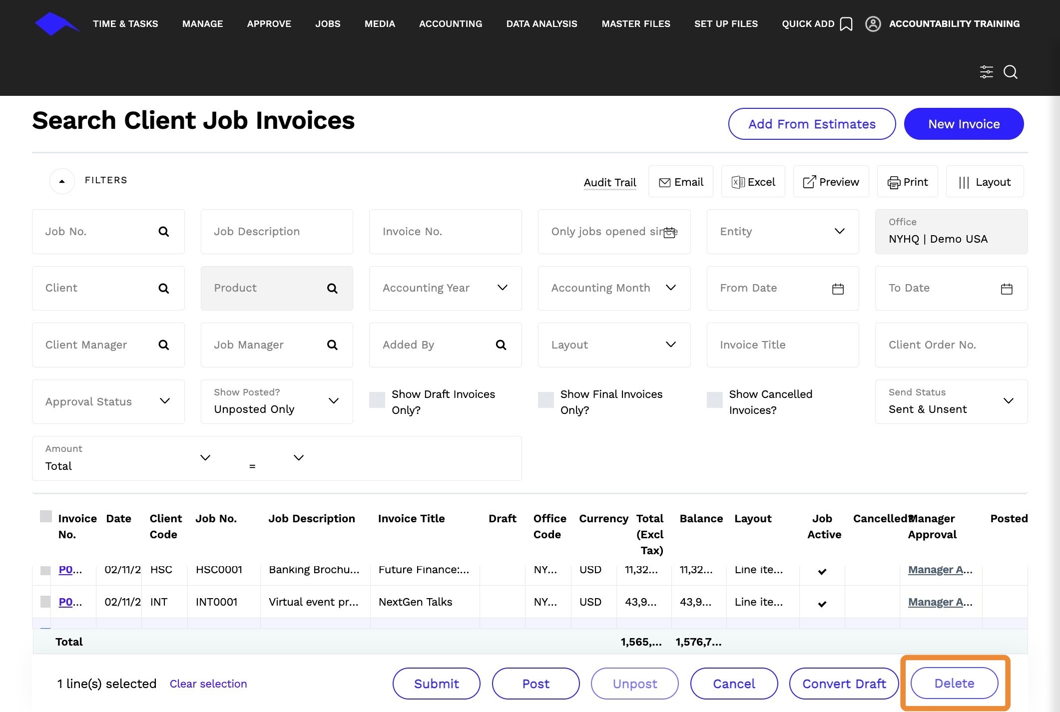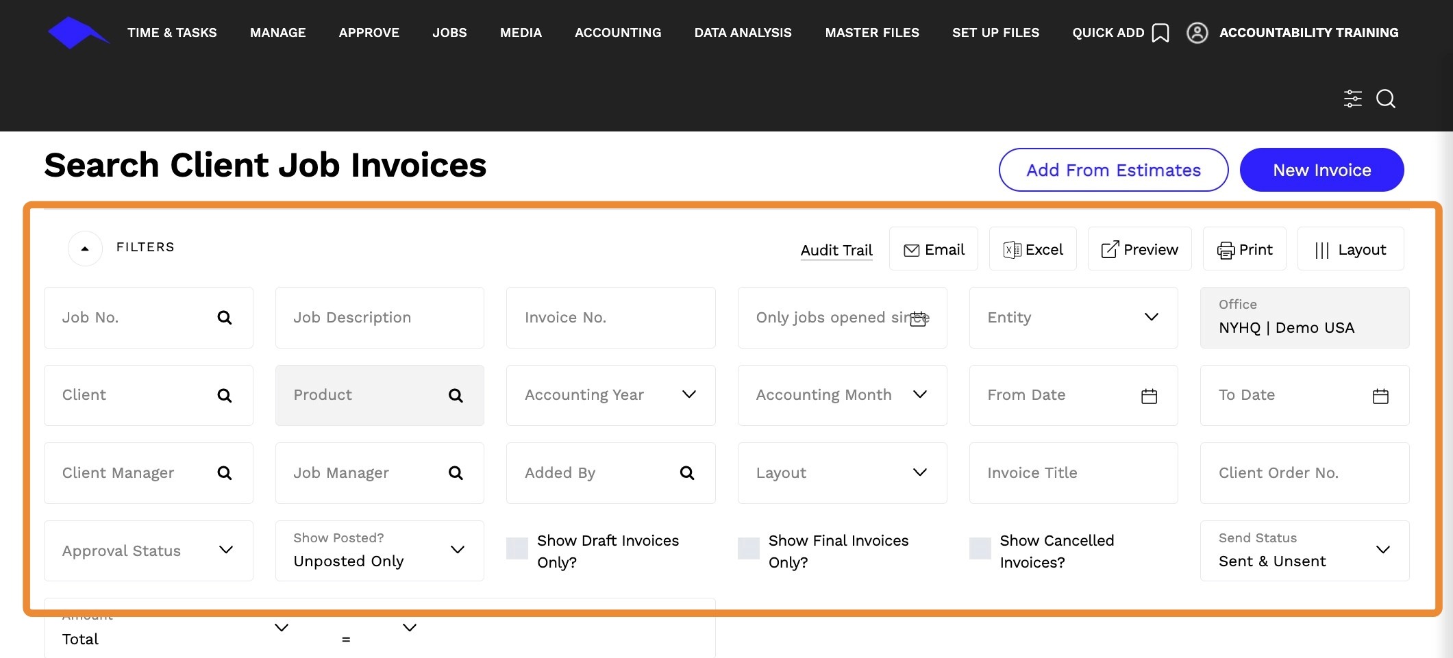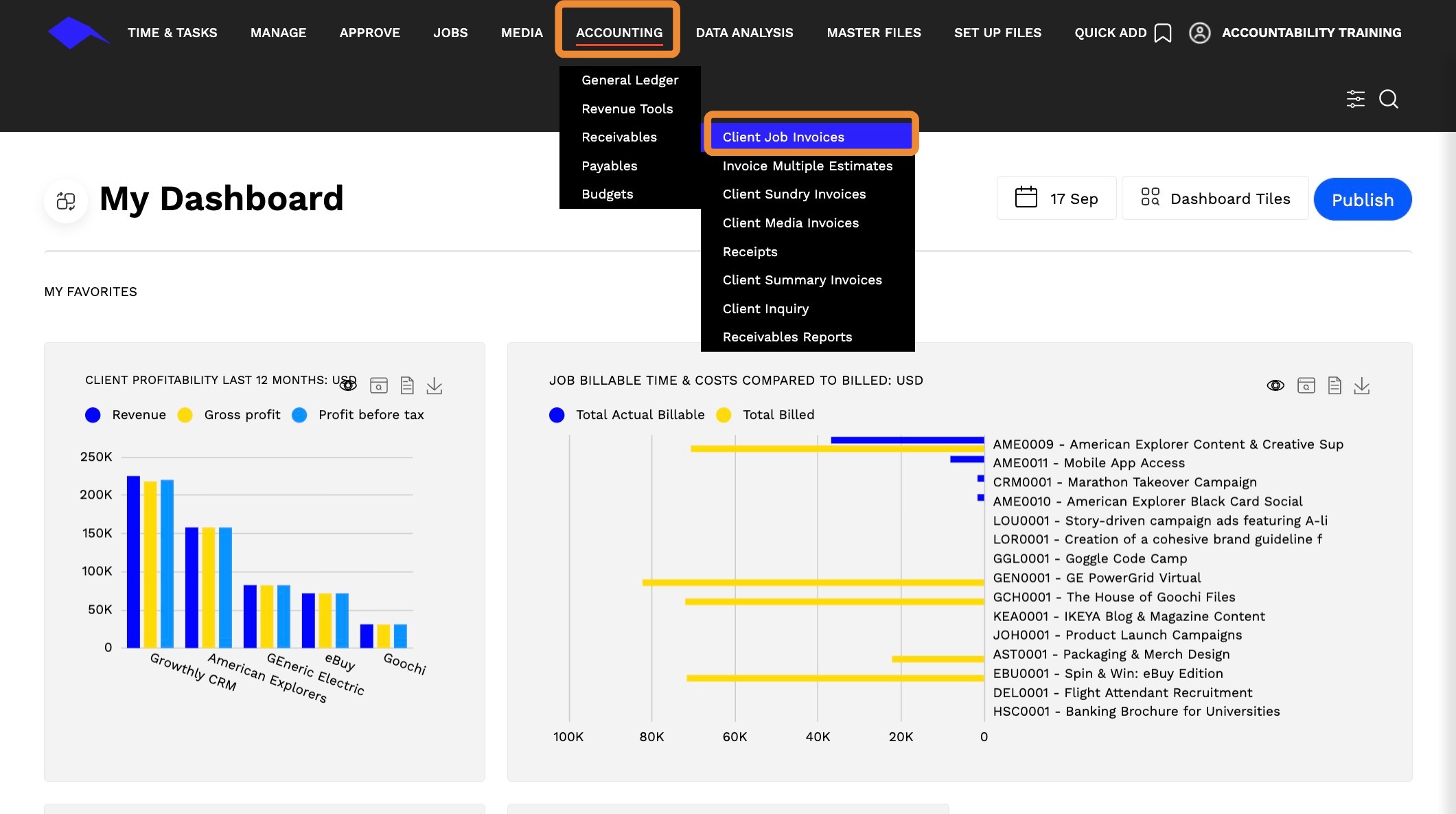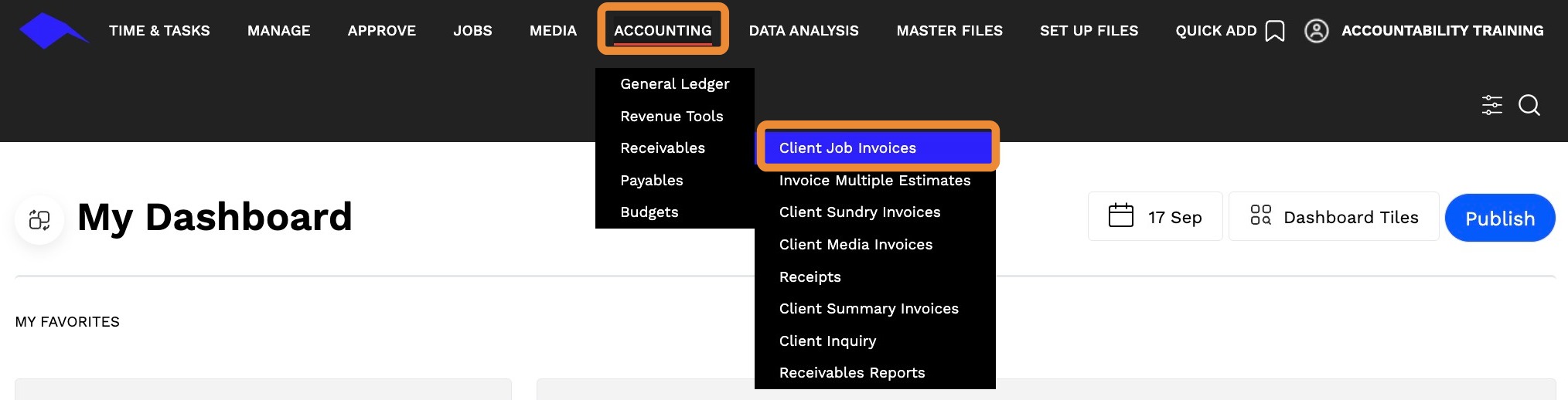 1. Navigate to ACCOUNTING >Receivables > Client Job Invoices