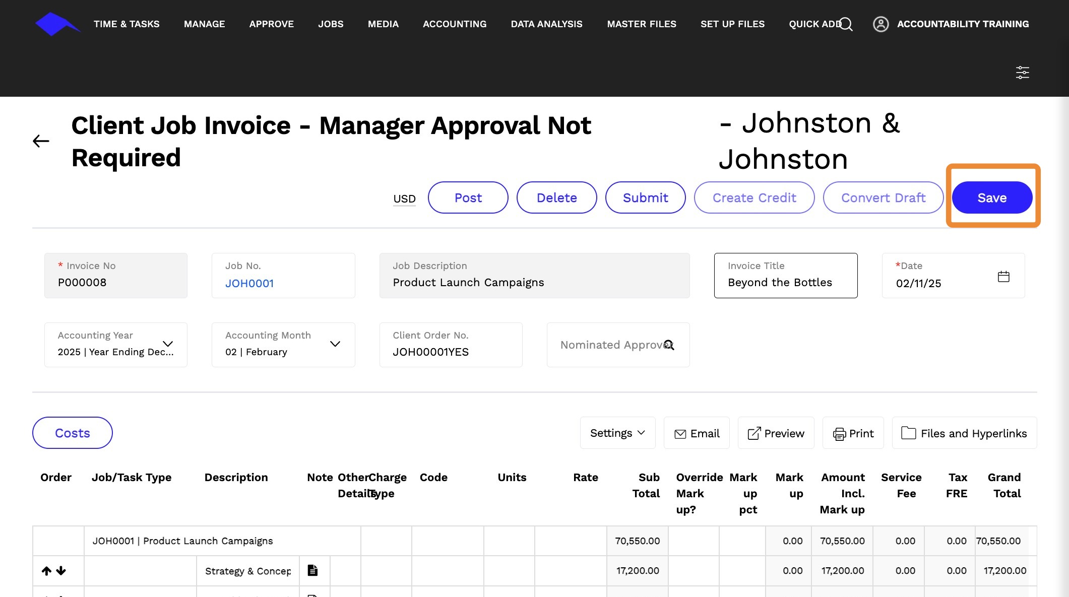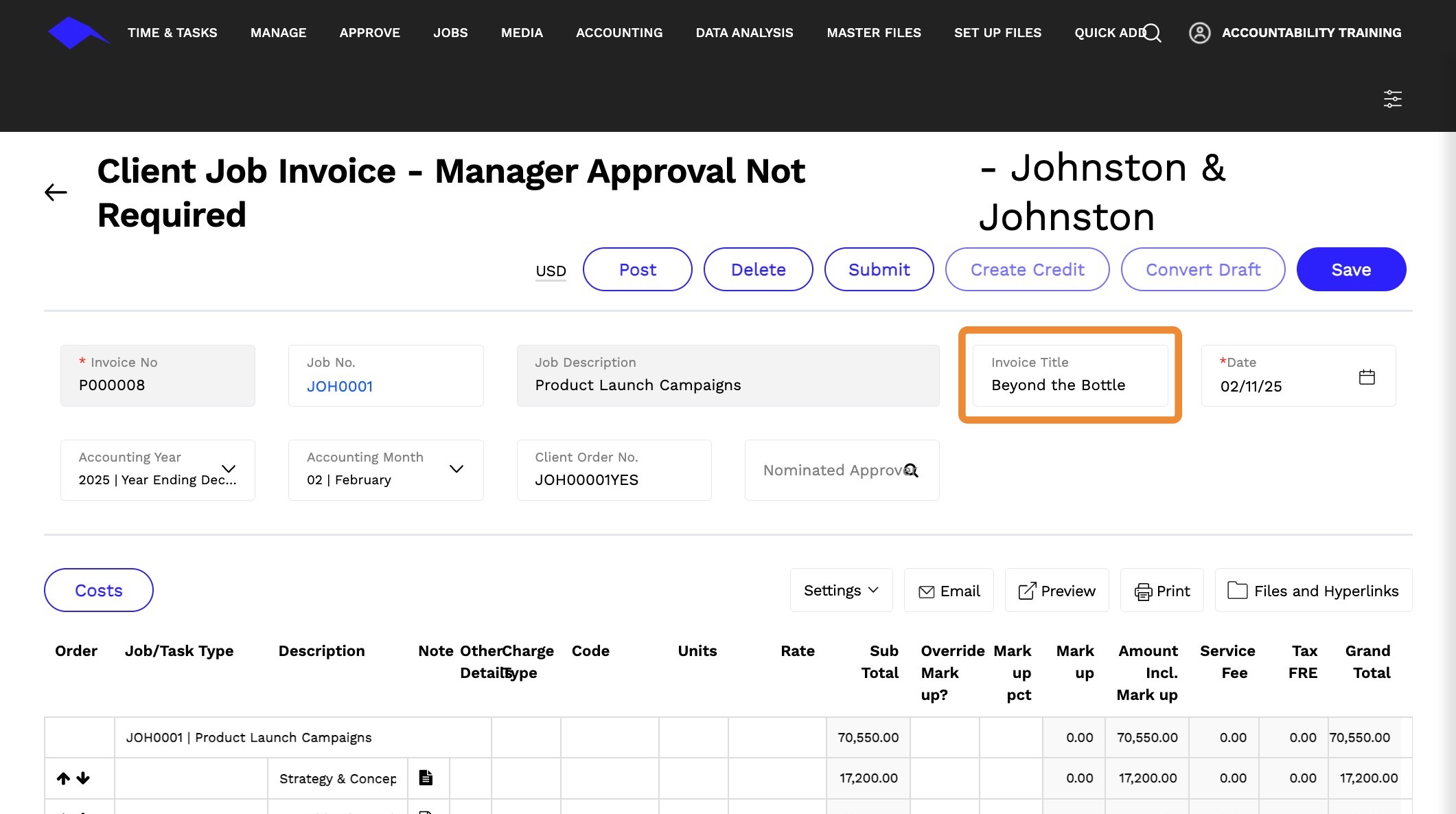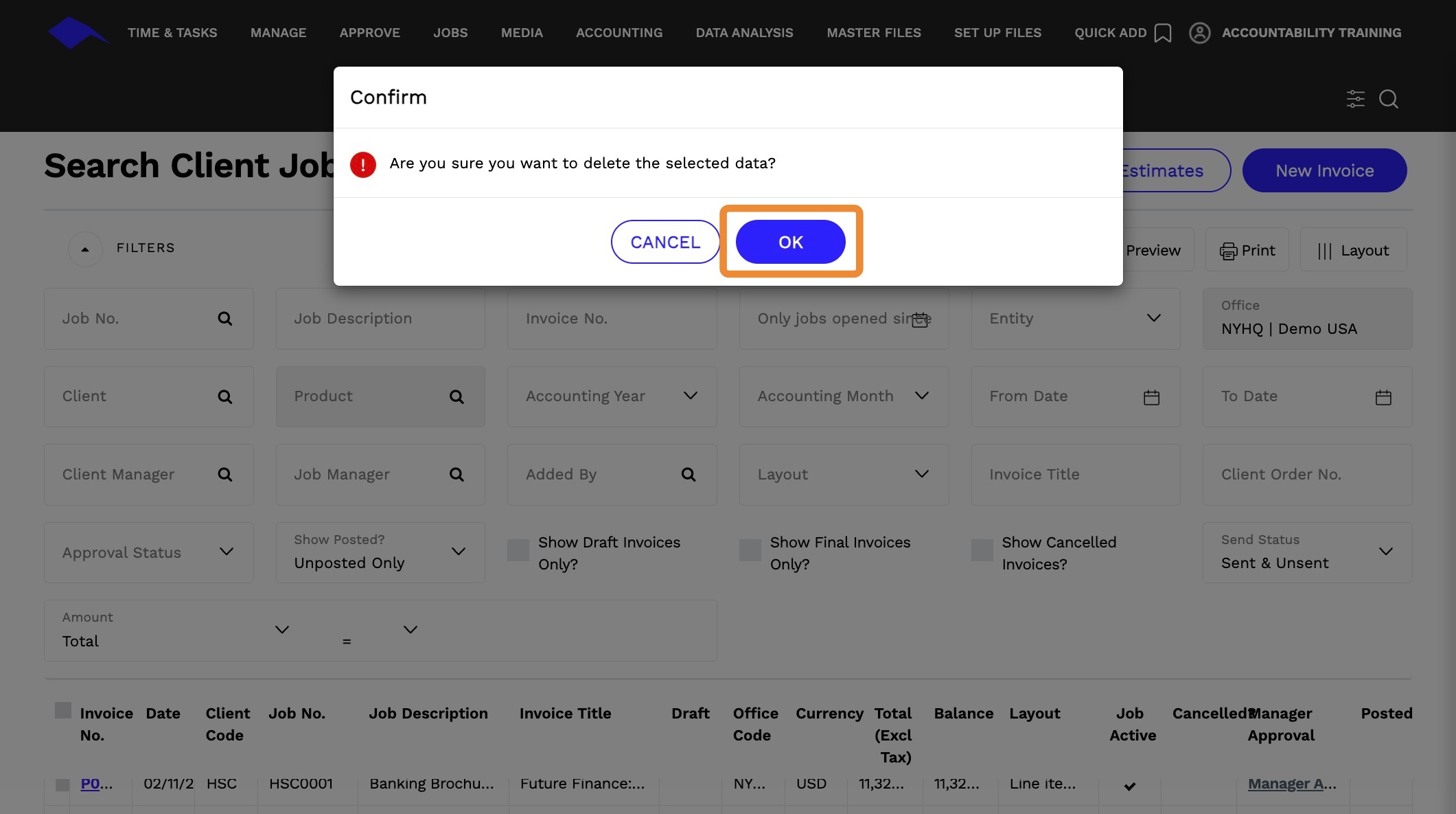 1. Navigate to ACCOUNTING >Receivables > Client Job Invoices