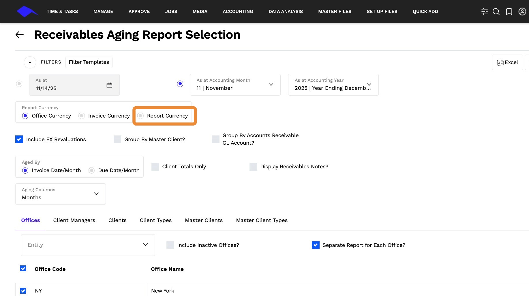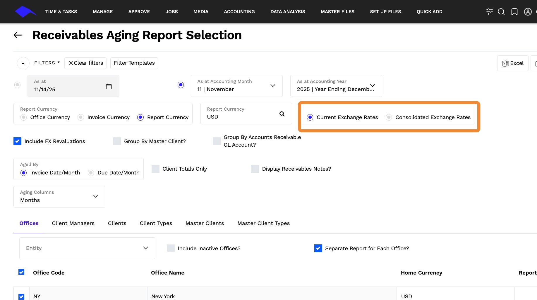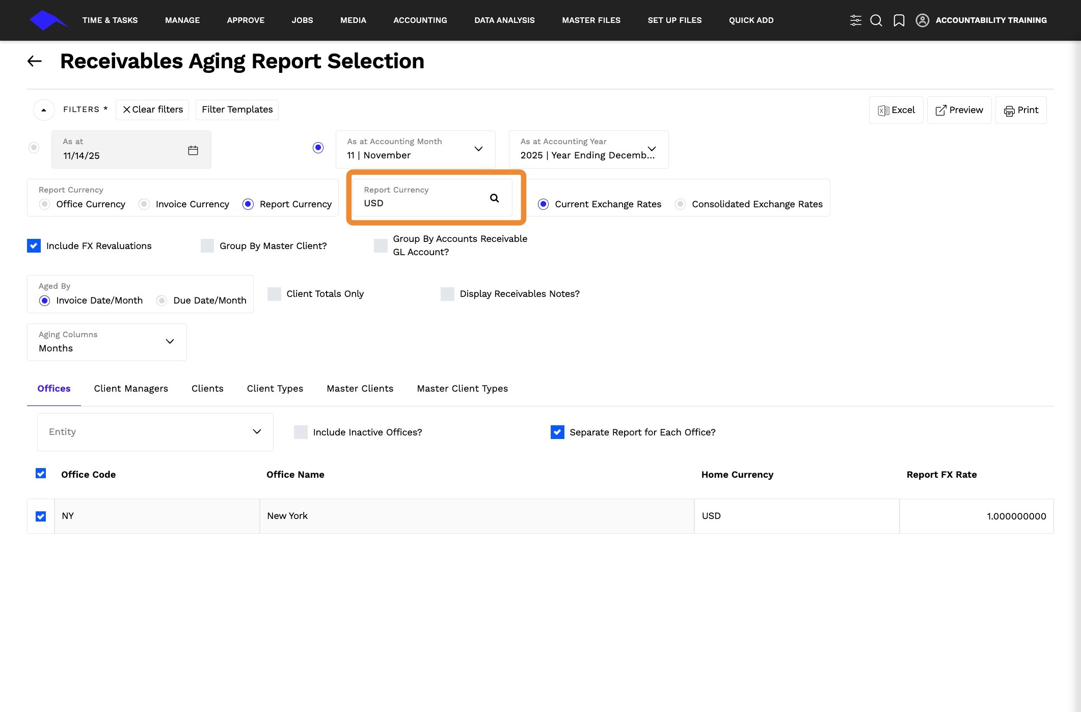 By utilizing Report Currency, you can conveniently generate AR and AP aging reports, enabling a precise comparison with consolidated GL reports. This feature enhances the accuracy of analyzing your accounts receivable and accounts