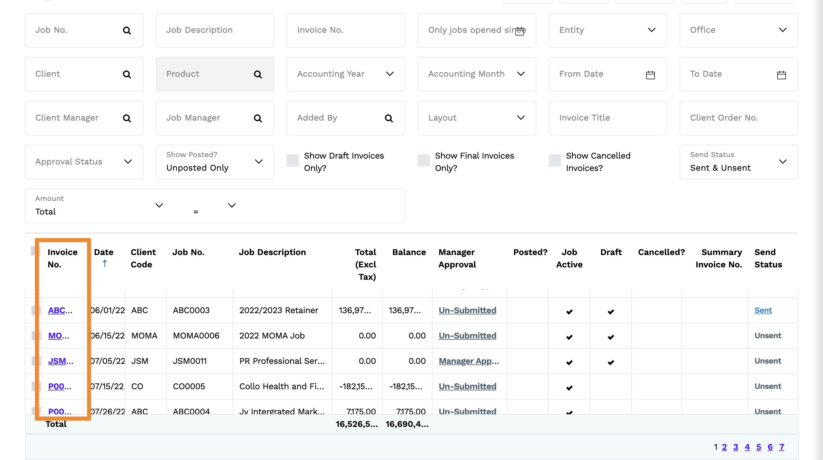 11. Select a Client Job Invoice by clicking on Invoice No.