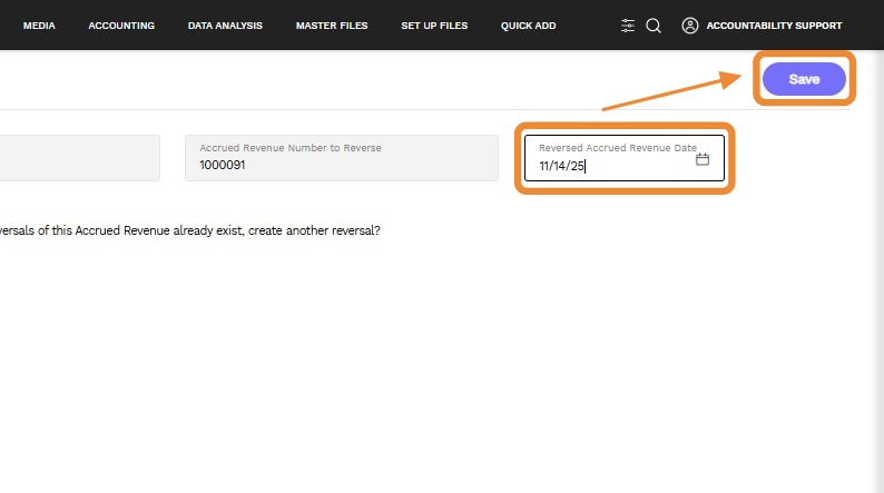 7. Enter the date that the reversal is to be created and click Save.