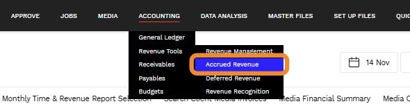 1. Navigate to Accounting > Revenue Tools > Accrued Revenue.