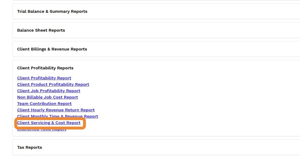 3. Click Client Servicing & Cost Report