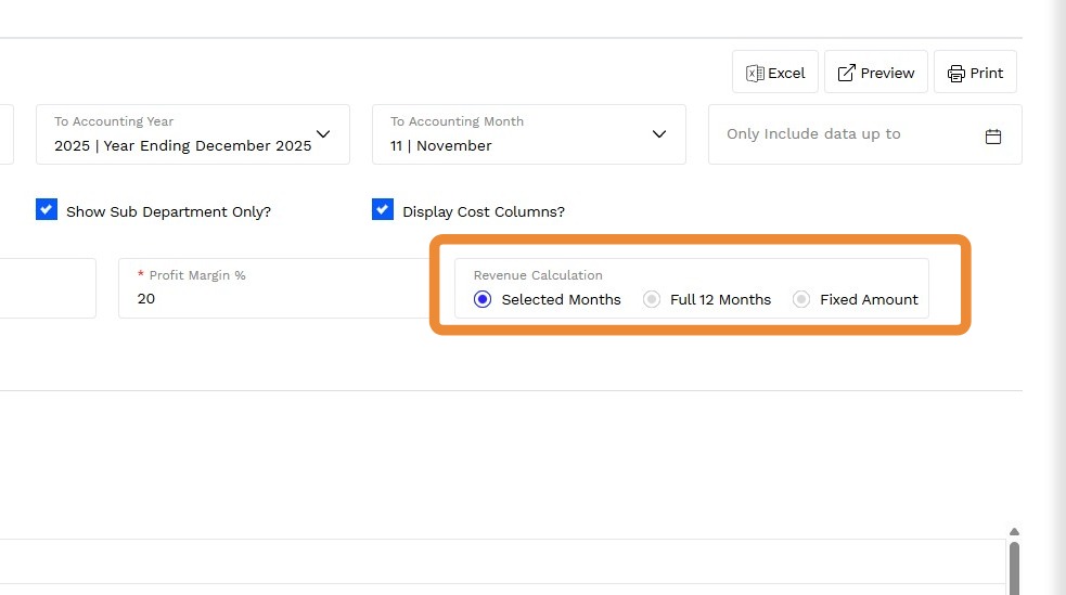 5. Choose the option you wish to display for Revenue Calculation: