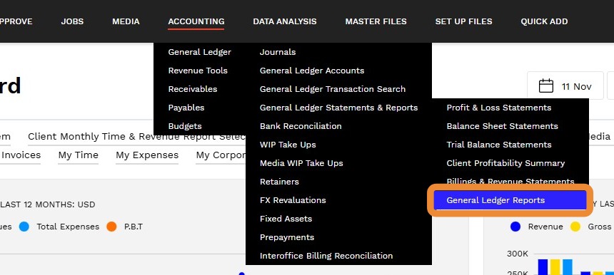 1. Navigate to ACCOUNTING > General Ledger > General Ledger Reports.