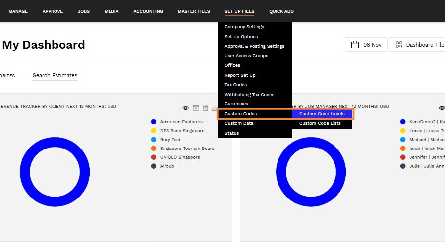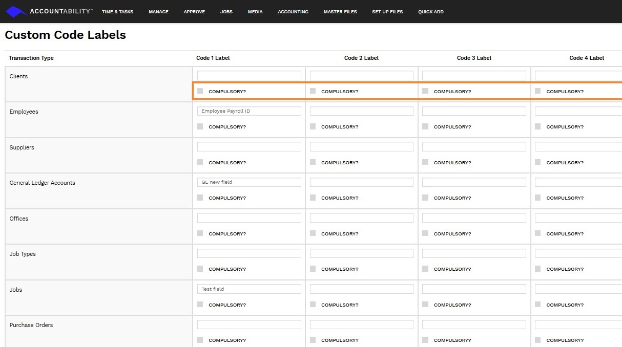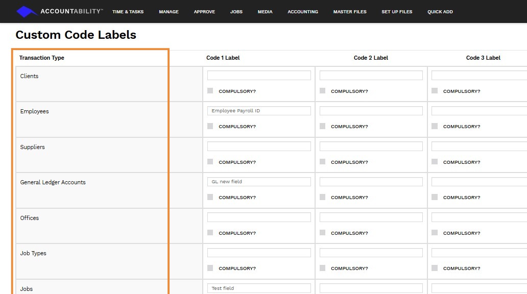 1. Navigate to Set Up Files > Custom Codes > Custom Code Labels.