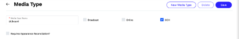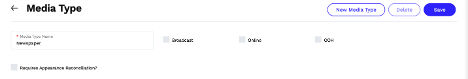 Click the “New Media Type” button to launch a Media Type form. Enter the media type name and check the corresponding category: Broadcast, Online, or Out-of-Home.