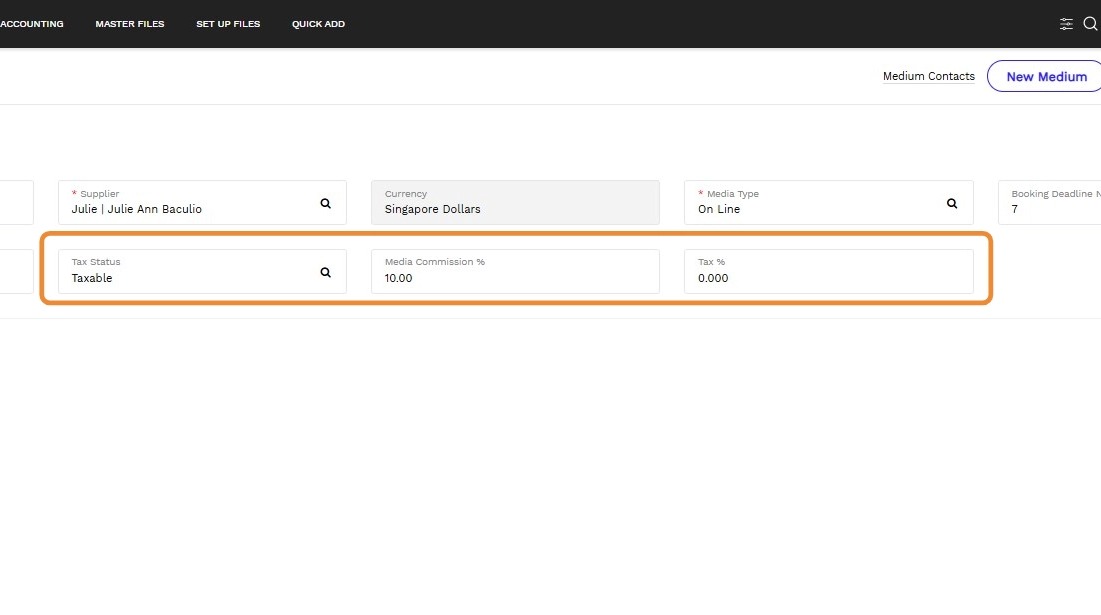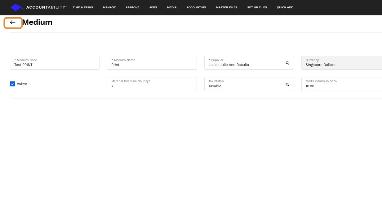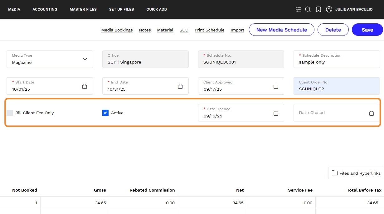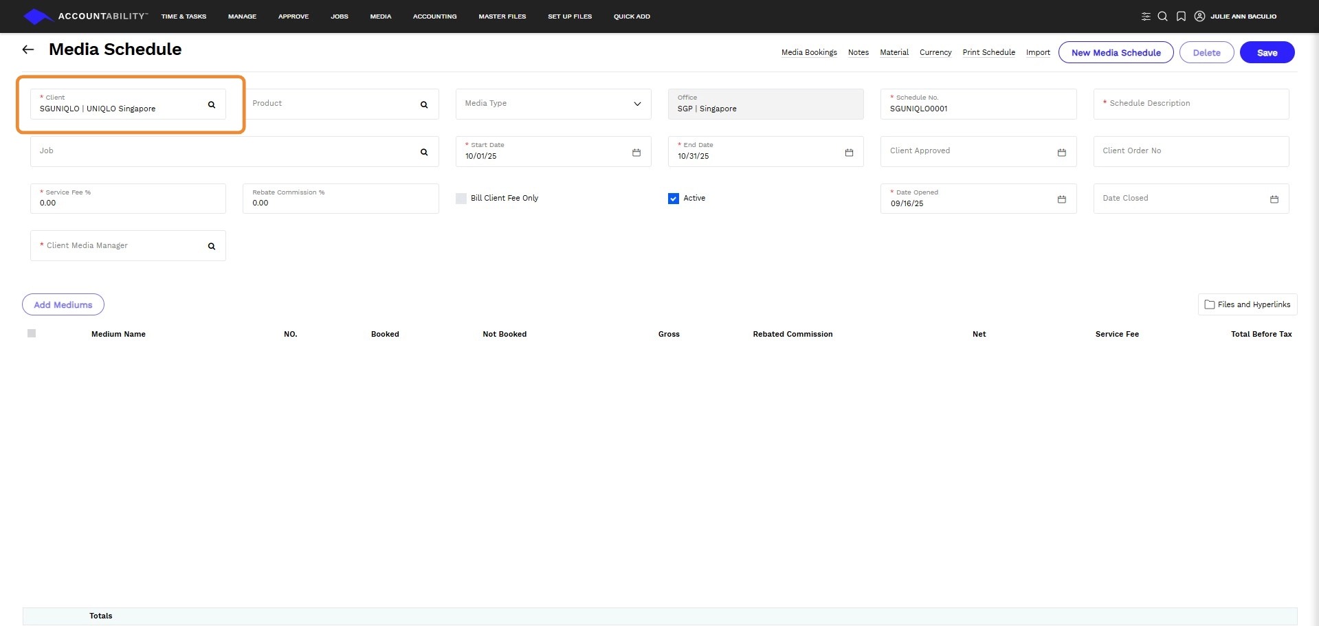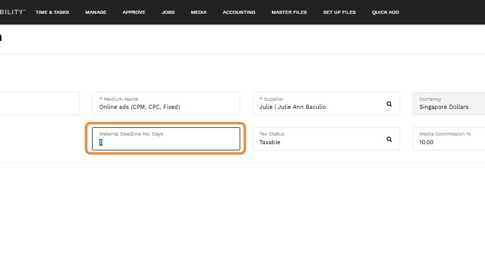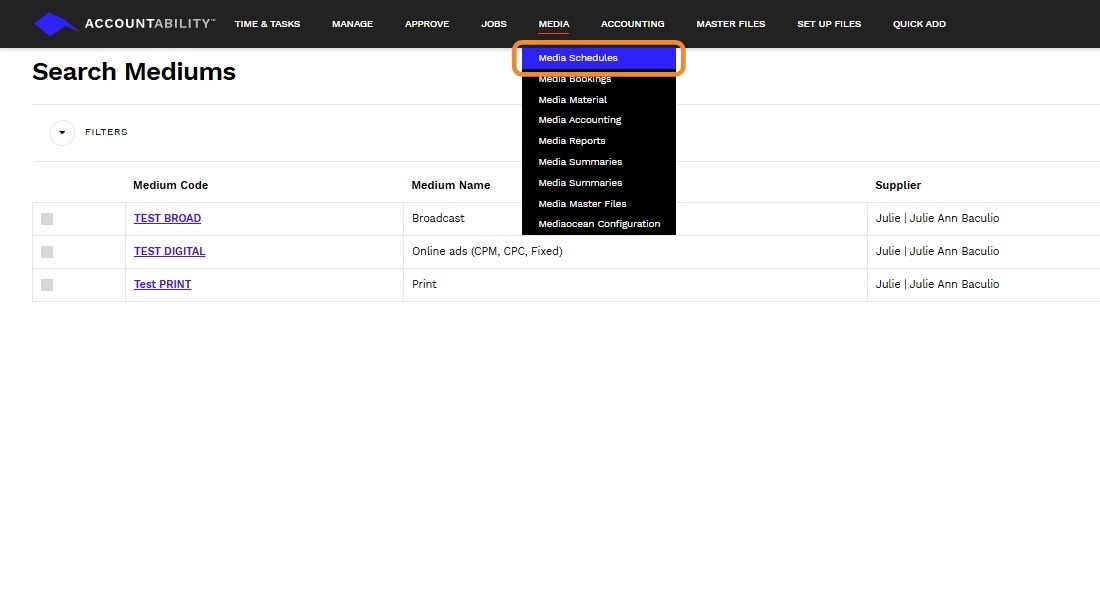 Media types in Accountability define the detail required for schedules. Broadcast, print, and online each have specific rate, placement, and adjustment fields that determine accurate client billing and supplier payments.