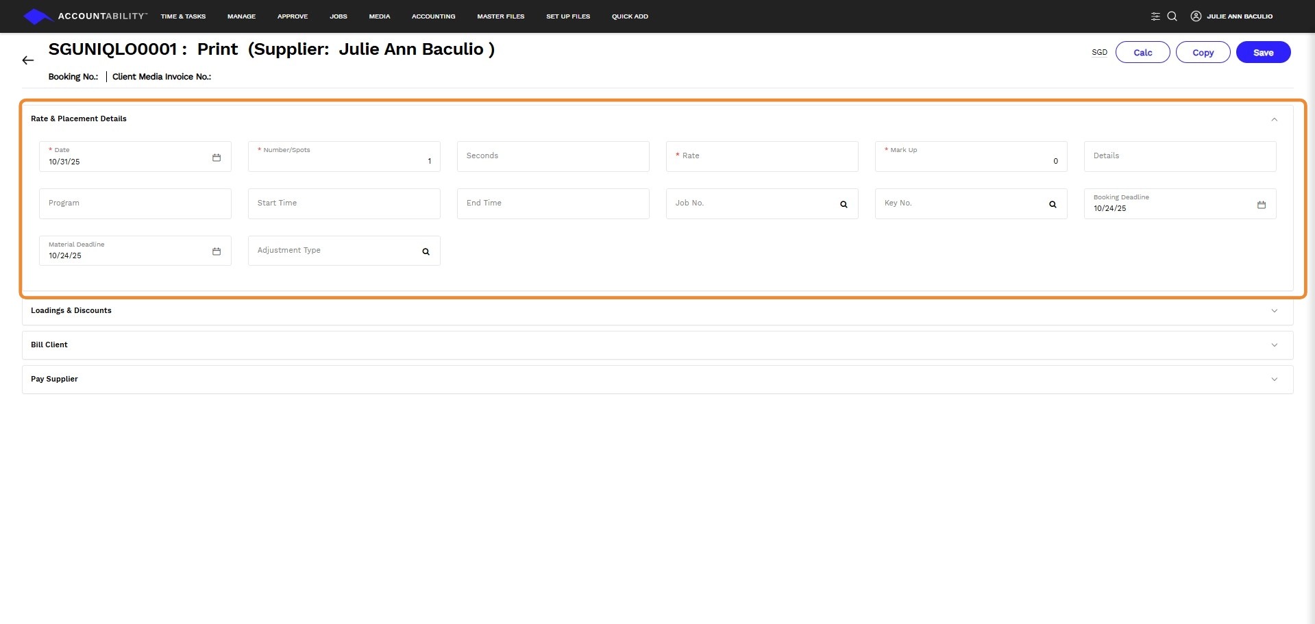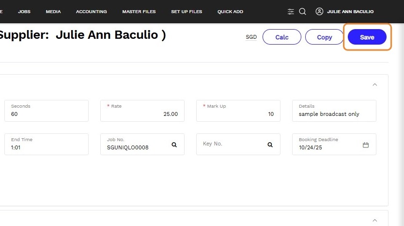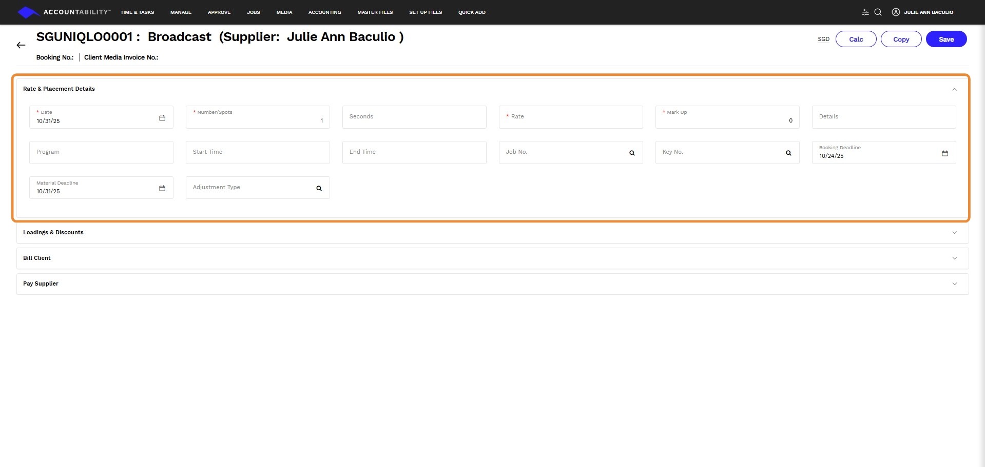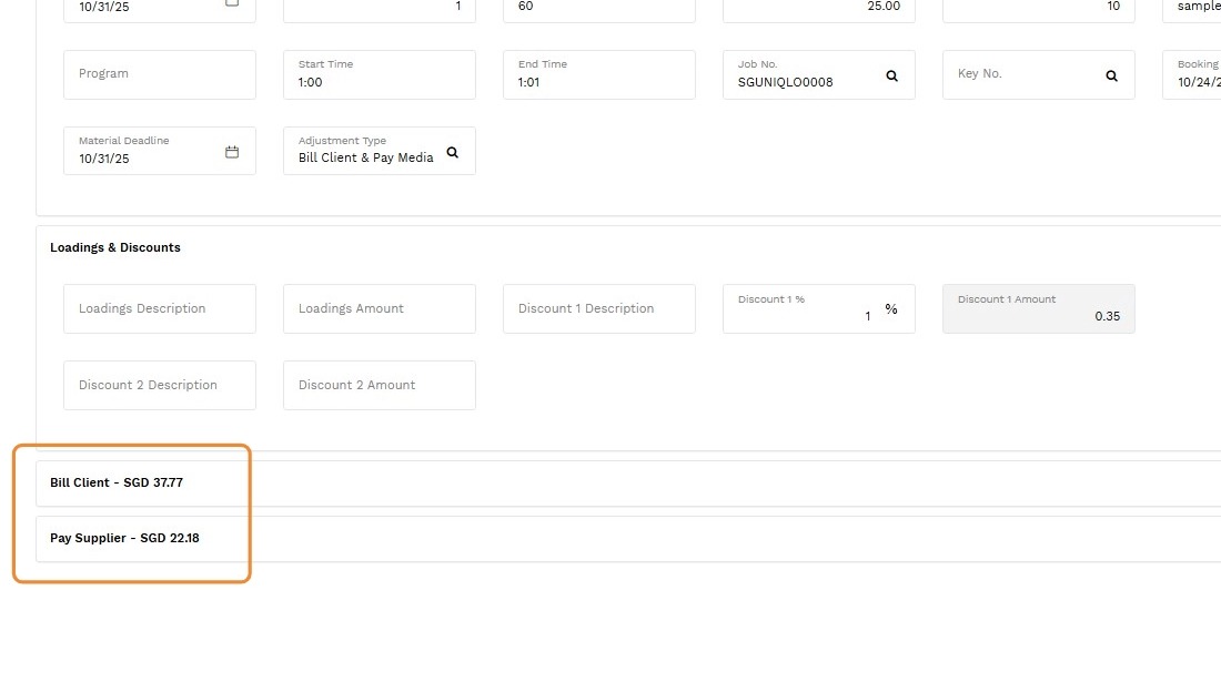 - Job No. The job number that links this media booking to a specific client project or campaign.