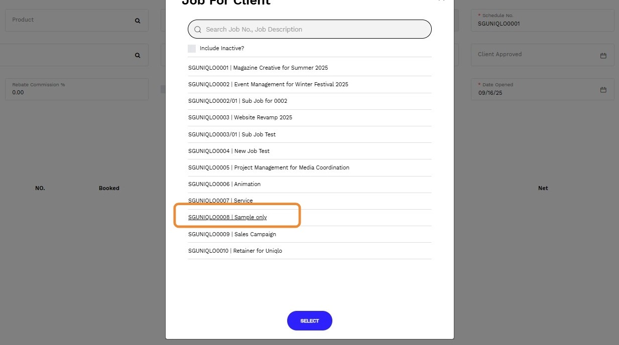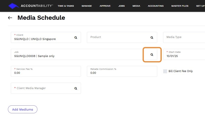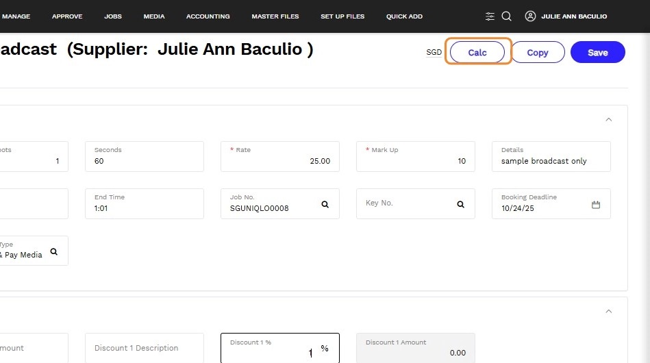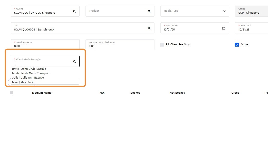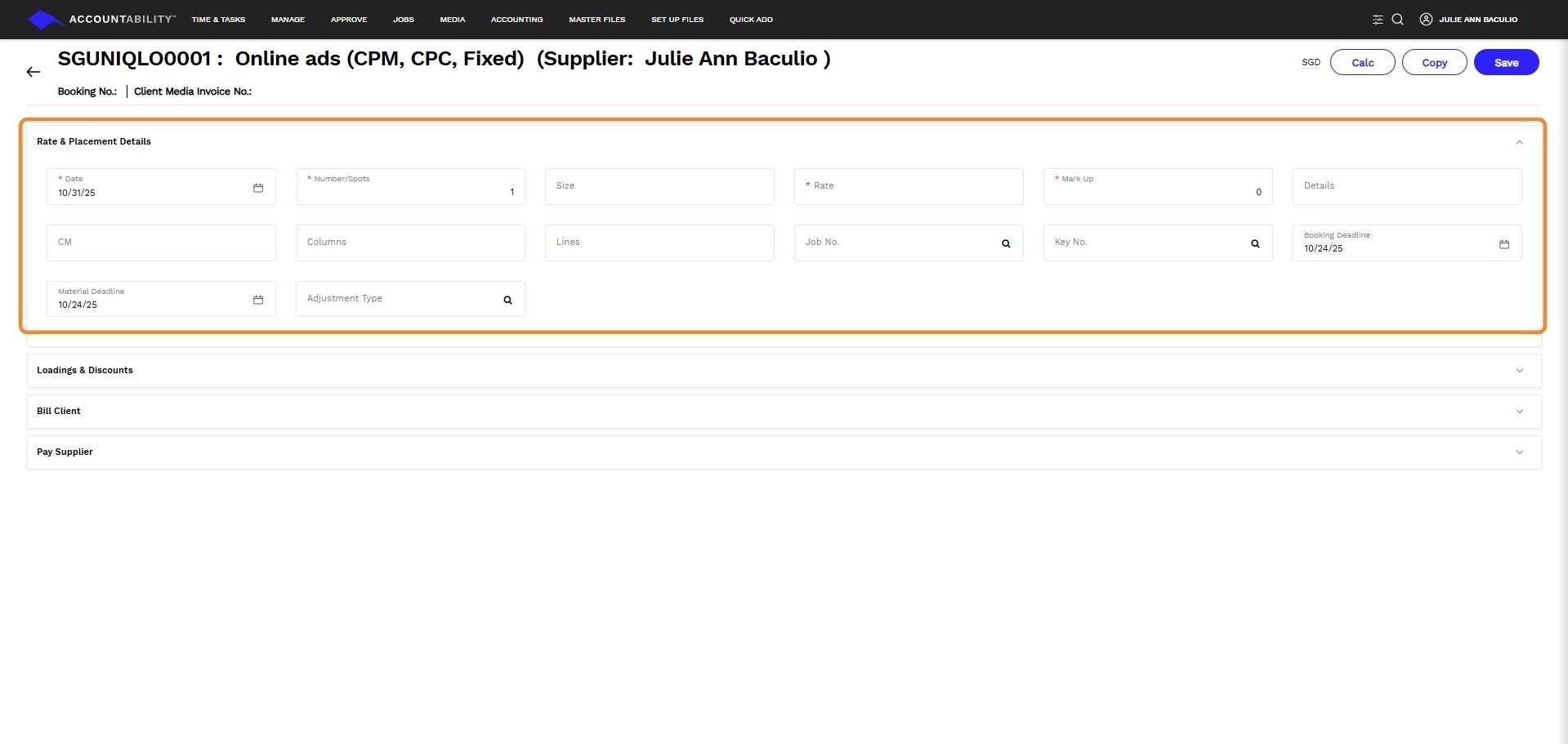 - Job No. The job number that links this media booking to a specific client project or campaign.
