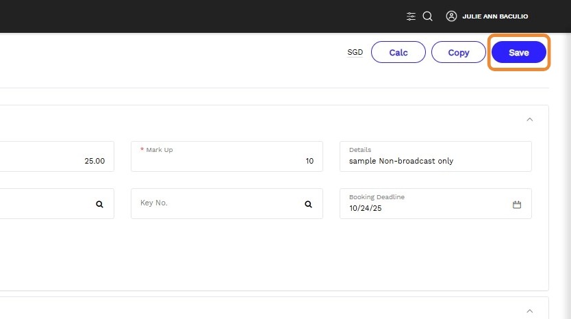 Example: 15% markup on a $100 rate results in a $115 client charge. - Program (Broadcast only)The name of the show, segment, or time slot where the spot will air.