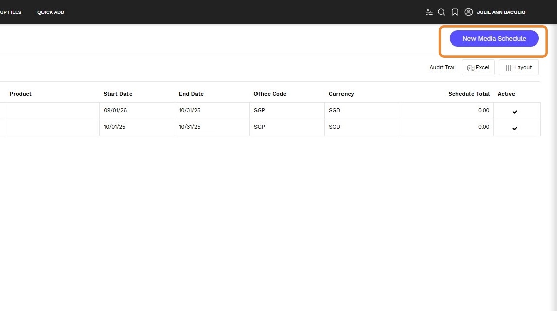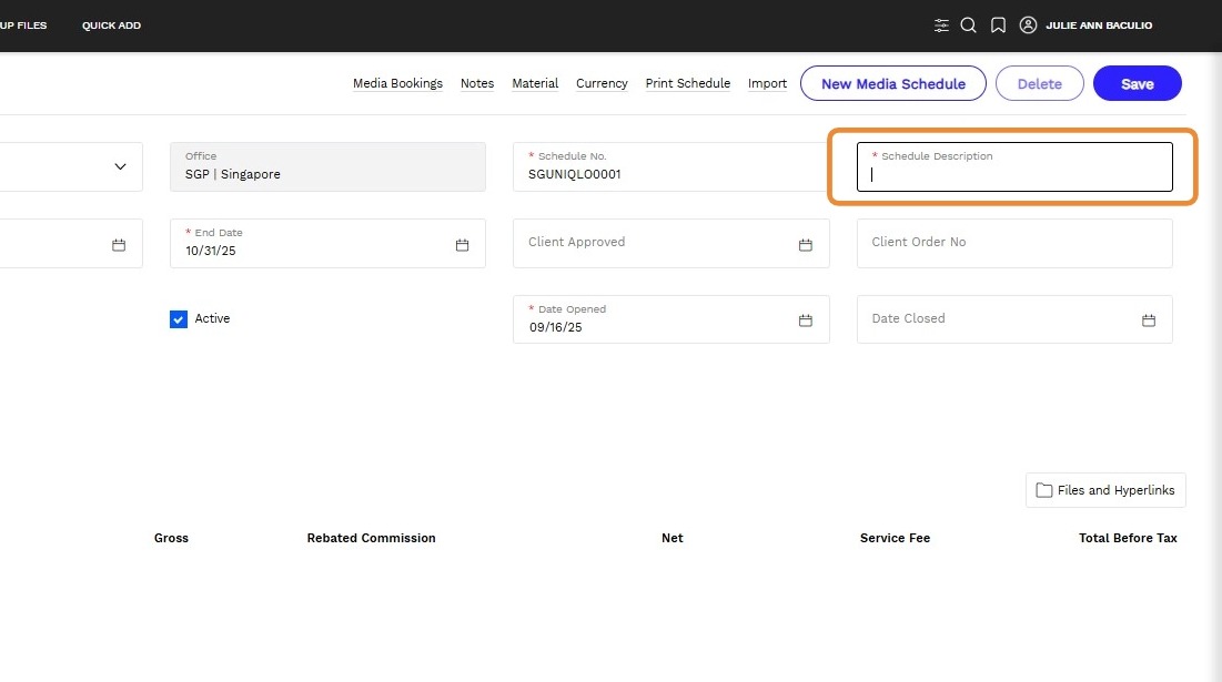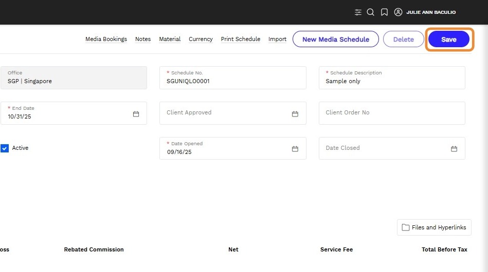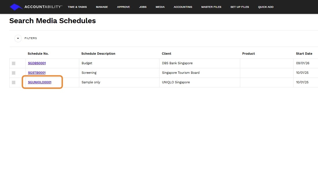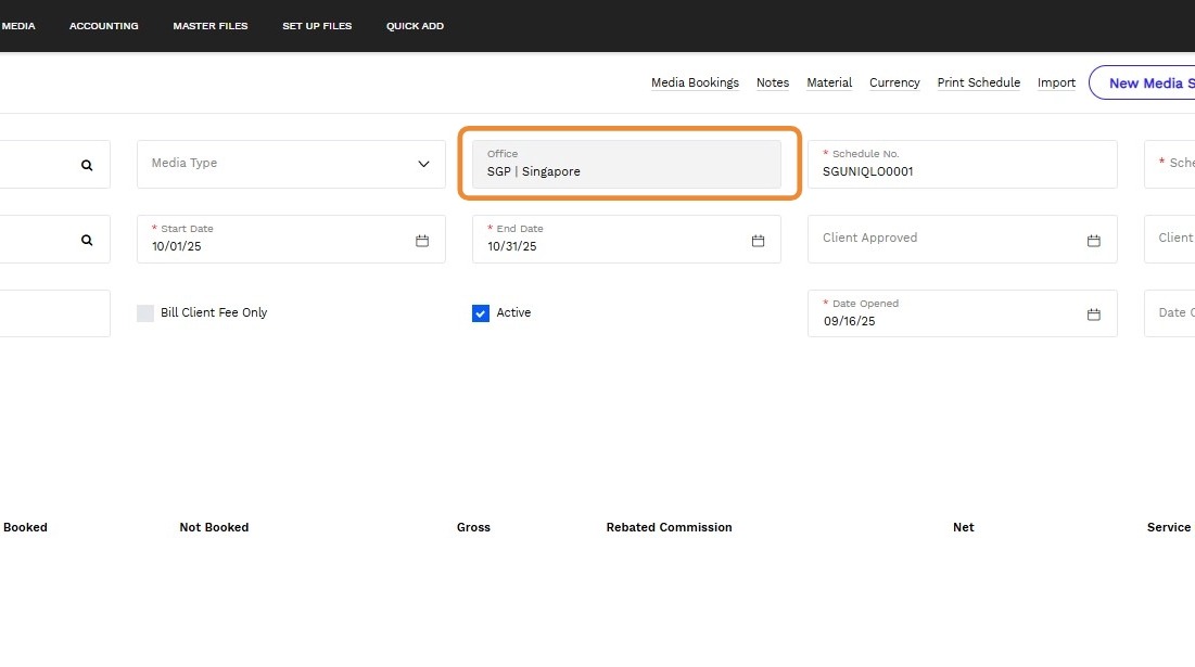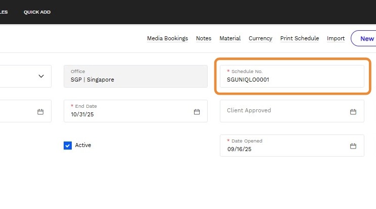 8. Schedule No.: A unique identifier for the media schedule. Used to track and reference the schedule across modules.