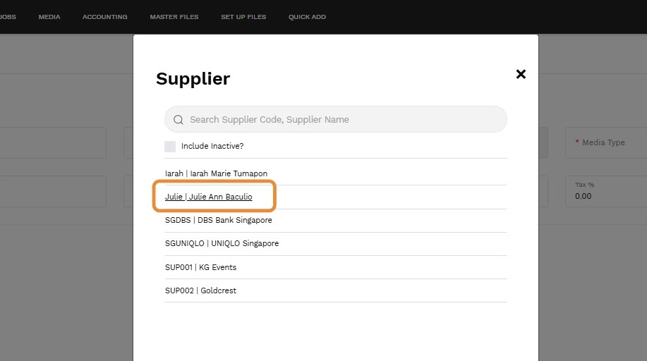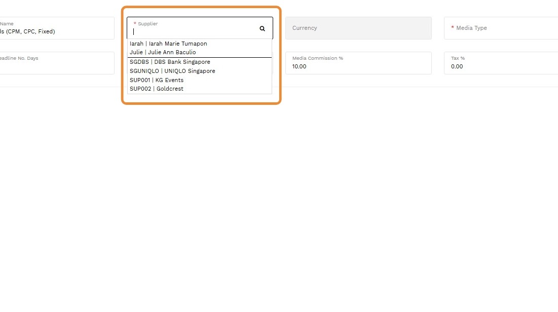 33. Click on the magnifying glass to select Supplier and click Select to confirm.