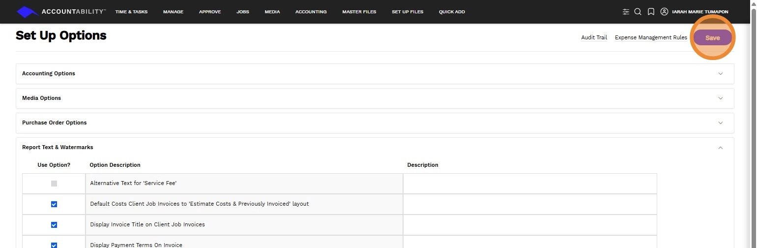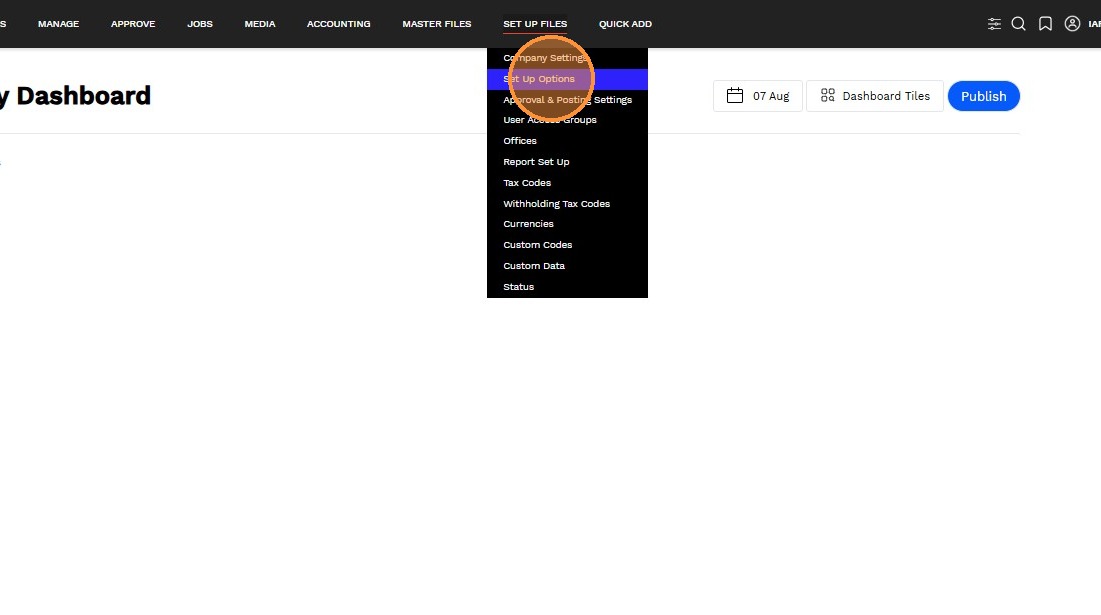 1. Navigate to Set Up Files > Set Up Options
