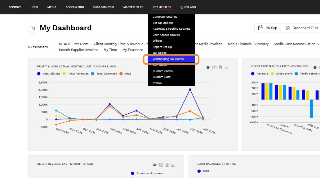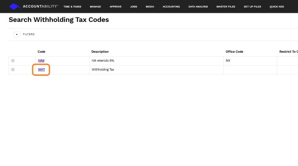 1. Navigate to Set Up Files > Withholding Tax Codes.