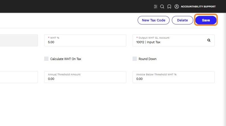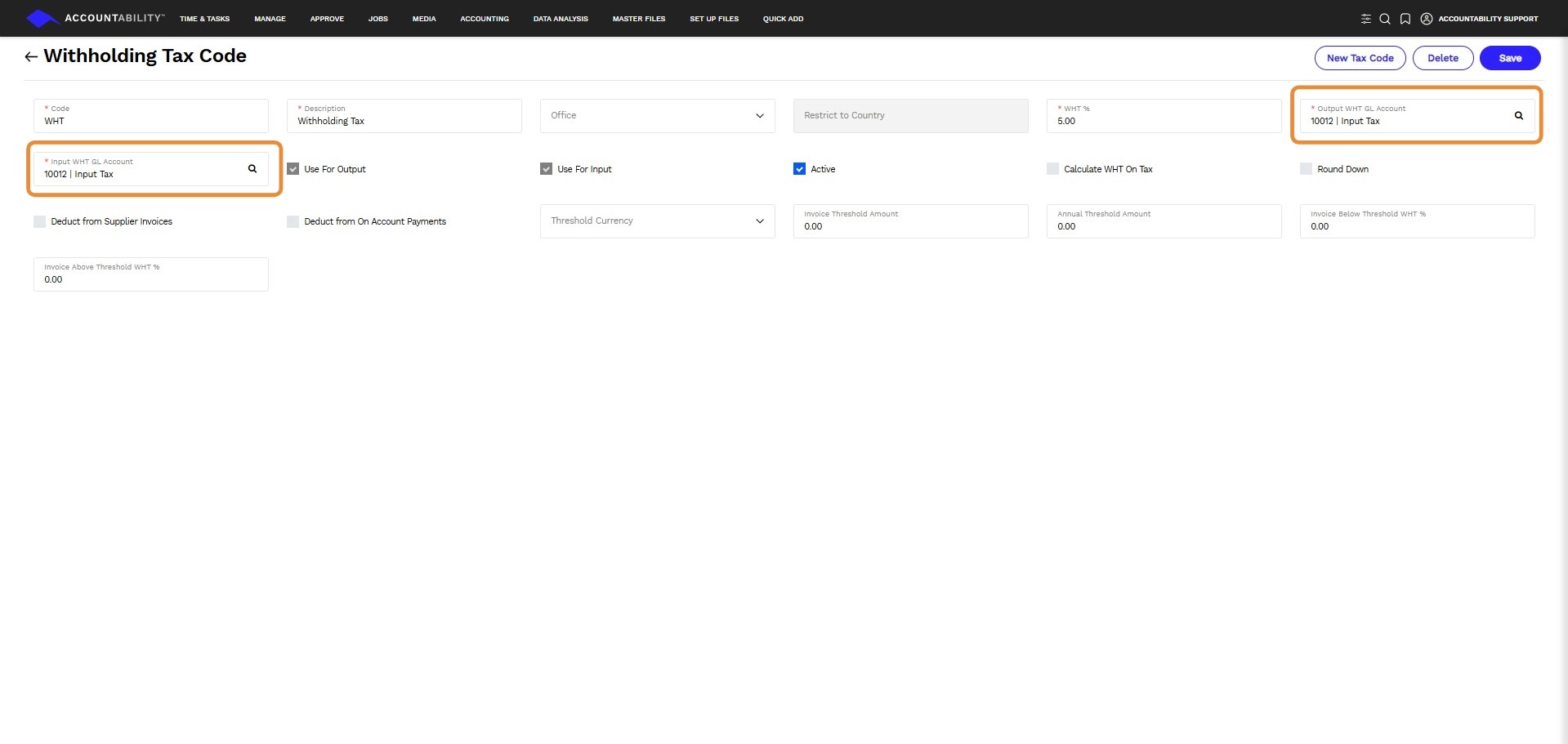 | Calculate WHT On Tax (checkbox) | Check this box if the WHT calculation is based on invoice amount plus tax. |